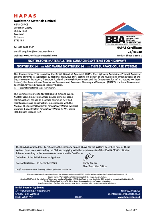 NORTHFLEX 14mm ThinSurf HAPAS Certificate 23H6940